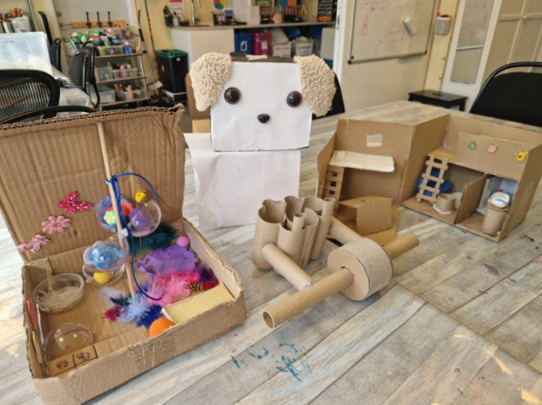 Her er plads til både små projekter og store, fantasifulde kreationer – for eksempel bygget af papkasser.
